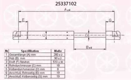 Газовая пружина, крышка багажник. KLOKKERHOLM 25337102