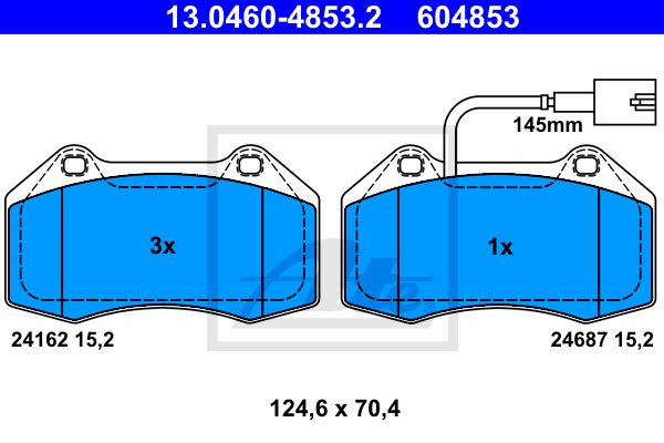 Комплект тормозных колодок, дисковый тормоз. ATE 13046048532