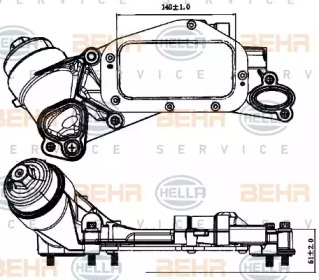 масляный радиатор, двигательное масло. BEHR HELLA SERVICE 8MO376729211