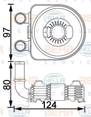 масляный радиатор, двигательное масло. BEHR HELLA SERVICE 8MO376797091