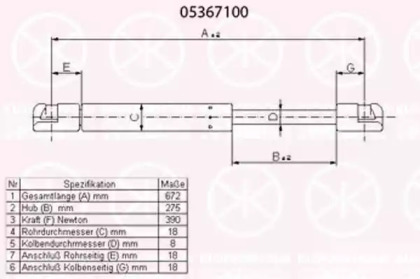 Газовая пружина, крышка багажник. KLOKKERHOLM 05367100