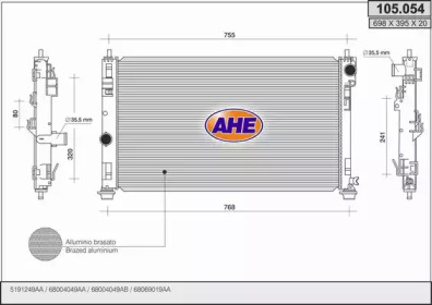 Радиатор, охлаждение двигателя. AHE 105054