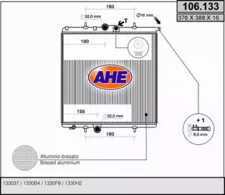 Радиатор, охлаждение двигателя. AHE 106133