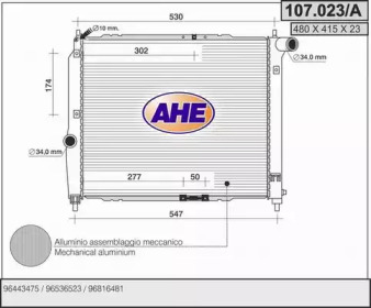 Радиатор, охлаждение двигателя. AHE 107023A