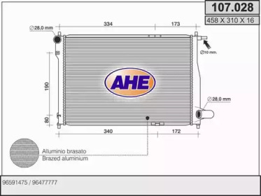 Радиатор, охлаждение двигателя. AHE 107028
