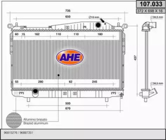 Радиатор, охлаждение двигателя. AHE 107033