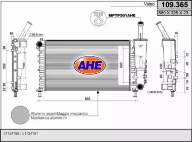 Радиатор, охлаждение двигателя. AHE 109365