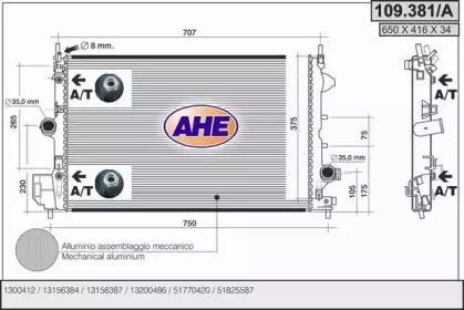 Радиатор, охлаждение двигателя. AHE 109381A