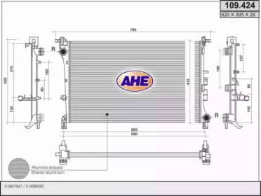 Радиатор, охлаждение двигателя. AHE 109424