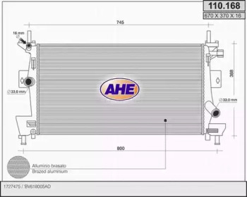 Радиатор, охлаждение двигателя. AHE 110168