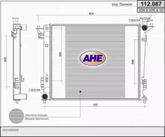 Радиатор, охлаждение двигателя. AHE 112087