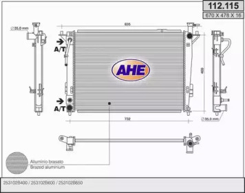 Радиатор, охлаждение двигателя. AHE 112115