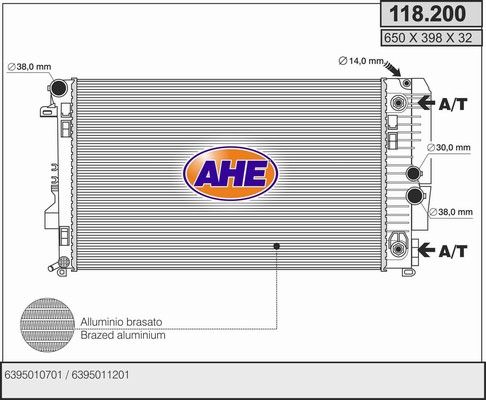 Радиатор, охлаждение двигателя. AHE 118200