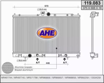 Радиатор, охлаждение двигателя. AHE 119083
