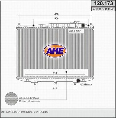 Радиатор, охлаждение двигателя. AHE 120173