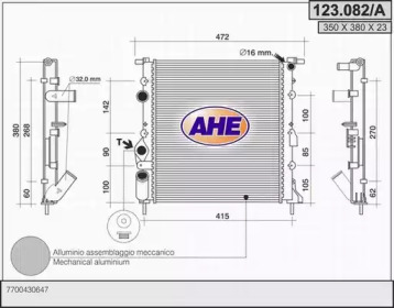 Радиатор, охлаждение двигателя. AHE 123082A