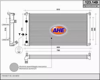 Радиатор, охлаждение двигателя. AHE 123149