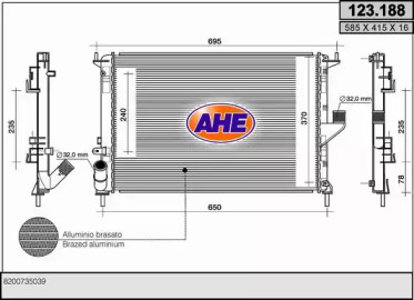 Радиатор, охлаждение двигателя. AHE 123188
