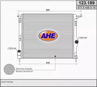 Радиатор, охлаждение двигателя. AHE 123189