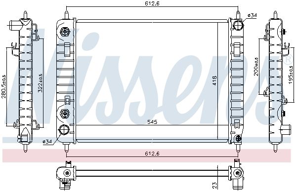 Радиатор, охлаждение двигателя. NISSENS 616907