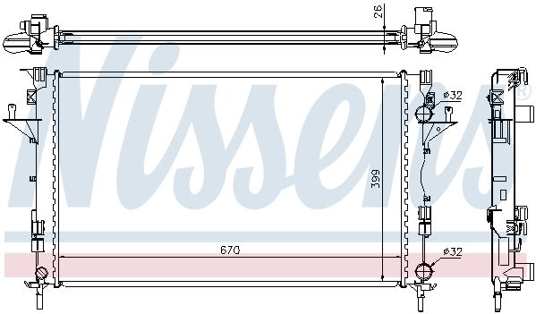 Радиатор, охлаждение двигателя. NISSENS 63816A