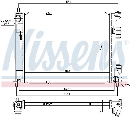Радиатор, охлаждение двигателя. NISSENS 67605