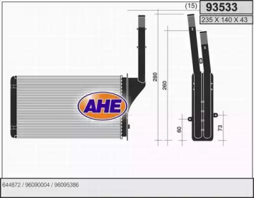 Теплообменник, отопление салона. AHE 93533