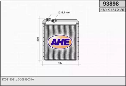 Теплообменник, отопление салона. AHE 93898