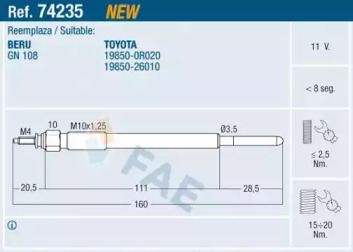 Свеча накаливания. FAE 74235