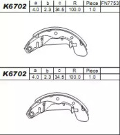 Комплект тормозных колодок. ASIMCO K6702