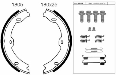 Комплект тормозных колодок, стояночная тормозная система. BSF 01805K