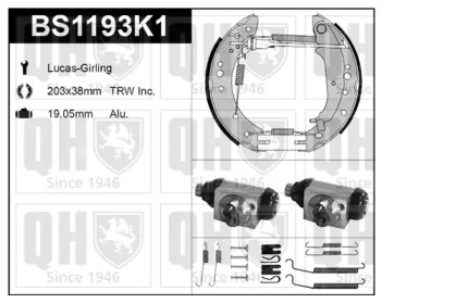 Комплект тормозов, барабанный тормозной механизм. QUINTON HAZELL BS1193K1