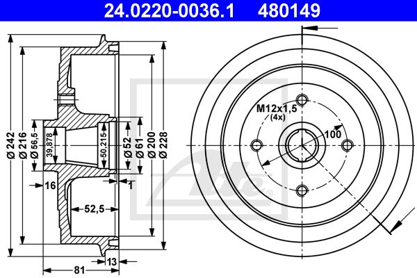 Тормозной барабан. ATE 24022000361
