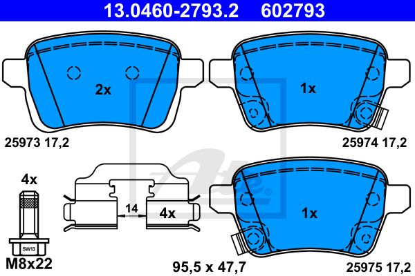Комплект тормозных колодок, дисковый тормоз. ATE 13046027932