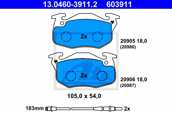 Комплект тормозных колодок, дисковый тормоз. ATE 13046039112