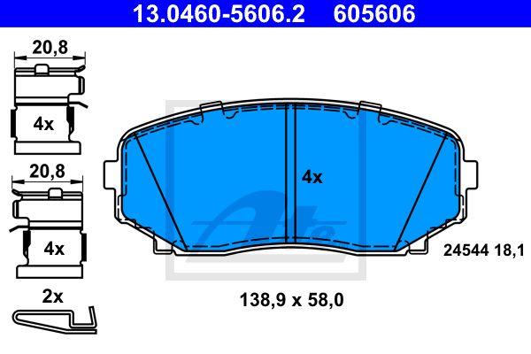 Комплект тормозных колодок, дисковый тормоз. ATE 13046056062