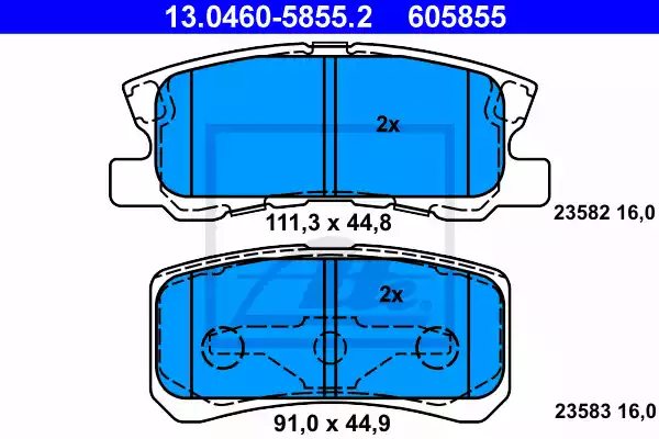 Комплект тормозных колодок, дисковый тормоз. ATE 13046058552