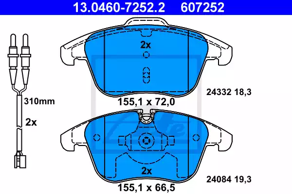 Комплект тормозных колодок, дисковый тормоз. ATE 13046072522