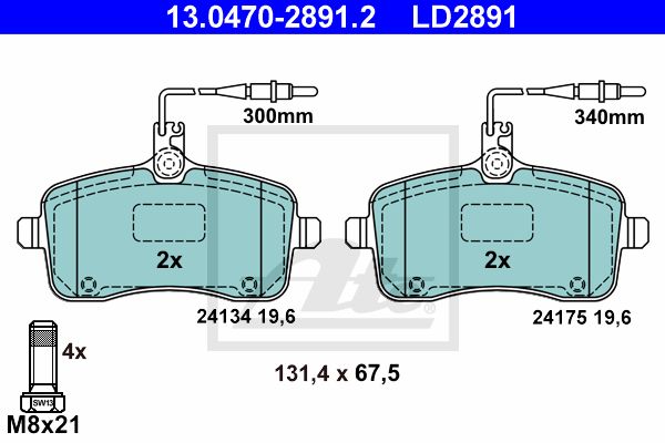 Комплект тормозных колодок, дисковый тормоз. ATE 13047028912