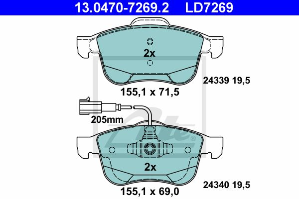Комплект тормозных колодок, дисковый тормоз. ATE 13047072692