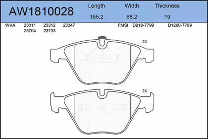 Комплект тормозных колодок, дисковый тормоз. AYWIPARTS AW1810028