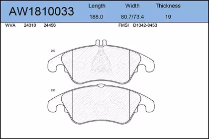 Комплект тормозных колодок, дисковый тормоз. AYWIPARTS AW1810033