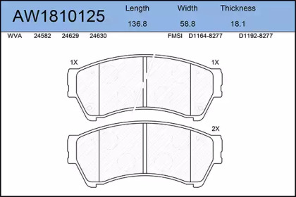 Комплект тормозных колодок, дисковый тормоз. AYWIPARTS AW1810125