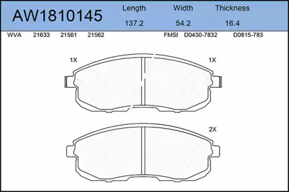 Комплект тормозных колодок, дисковый тормоз. AYWIPARTS AW1810145
