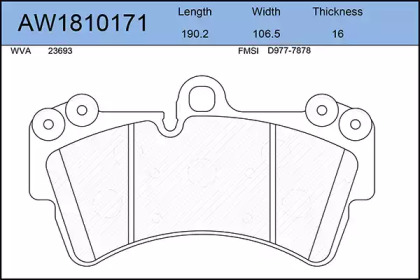 Комплект тормозных колодок, дисковый тормоз. AYWIPARTS AW1810171