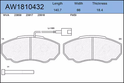 Комплект тормозных колодок, дисковый тормоз. AYWIPARTS AW1810432