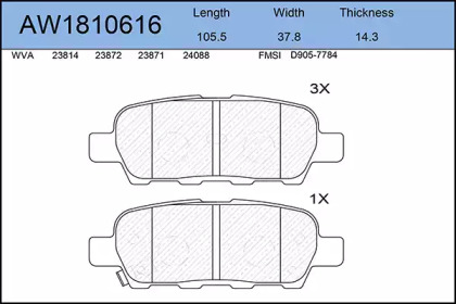 Комплект тормозных колодок, дисковый тормоз. AYWIPARTS AW1810616