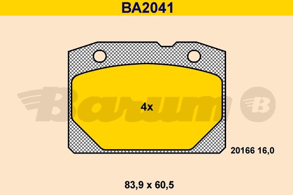 Комплект тормозных колодок, дисковый тормоз. BARUM BA2041
