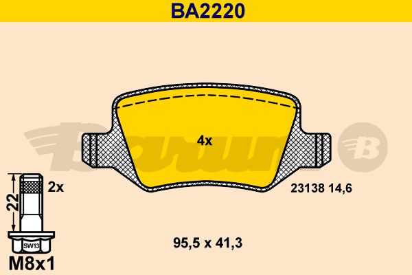 Комплект тормозных колодок, дисковый тормоз. BARUM BA2220