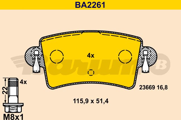 Комплект тормозных колодок, дисковый тормоз. BARUM BA2261